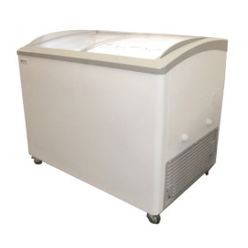 This 11.5 cu ft display freezer is sure to increase impulse sales of your frozen goods. It features a heat resistant curved glass lid, which invites customers to look inside. Four included coated metal baskets allows you to organize products and make smaller items more accessible. LED lighting draws customers to your merchandise. The temperature is easily controlled with the adjustable thermostat. A cold wall evaporator is included in the machine, keeping your products cool and dry.