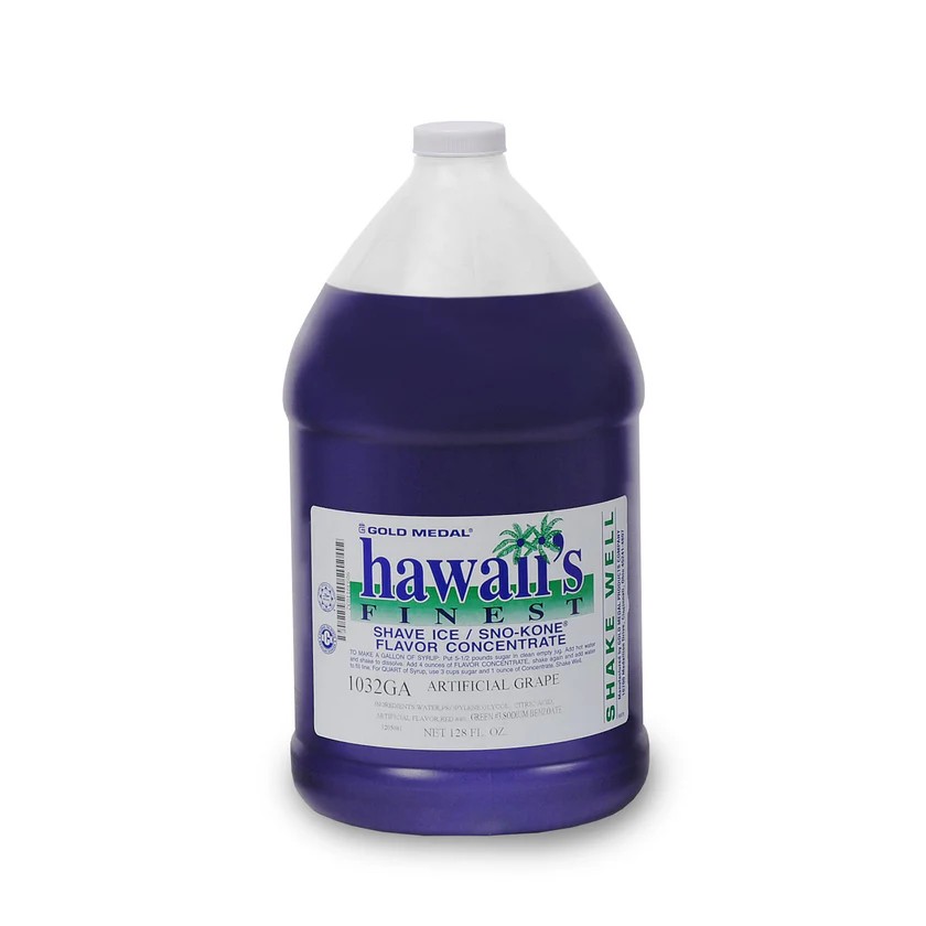 The Hawaii's Finest Shave Ice Flavor Concentrates are available in 128 oz. (gallon) bottles. One bottle when mixed with sugar will make 32 gallons of ready to use flavored syrup. Save over $2.00 a gallon with the Gold Medal professional quality concentrates for Shave Ice. Gold Medal has been the leading manufacturer of flavor concentrates since the early 30s and today this is the finest line of concentrated flavors available. To make 1 gallon, simply use 4 oz. of the concentrate, plus 5 lbs, of sugar to make a better syrup than you can buy anywhere!
