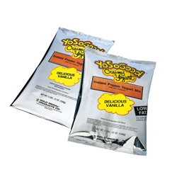 The name says it all. This delicious, low-fat yogurt has a silky smooth texture that melts in your mouth and pairs perfectly with fruit or candy toppings. It's simple and inexpensive to use, and there aren't any refrigeration or special storage requirements for this foil packed powder. (However, you must refrigerate once it's mixed with water.) This snack item only has 75 calories per 3.5 oz. serving. It will quickly become your customers' new guilty pleasure without the guilt! This product is packaged: 1 - 2.75 lbs. bags per case. Also try it as a base for sundaes, smoothies, or milkshakes. 96% Fat Free!